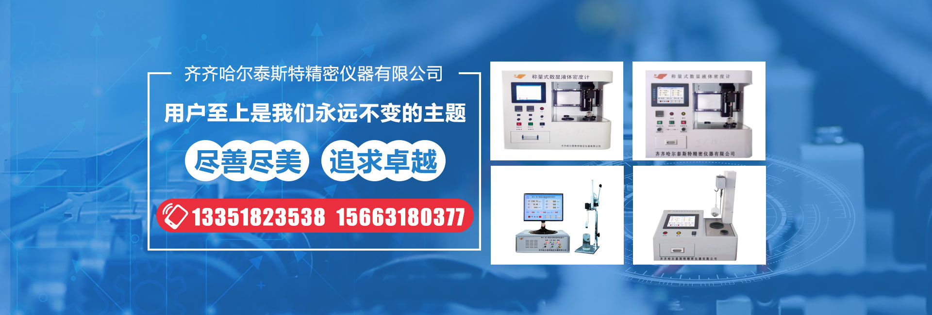 齊齊哈爾泰斯特精密儀器有限公司是按現(xiàn)代企業(yè)制度組建的高新技術(shù)企業(yè),公司集科研、生產(chǎn)、經(jīng)營(yíng)于一體。 公司董事長(zhǎng)趙萬(wàn)山先生是“稱(chēng)量式數(shù)顯液體密度計(jì)”發(fā)明人及“稱(chēng)量式數(shù)顯液體密度計(jì)”國(guó)家計(jì)量檢定規(guī)程(JJG999-2005)起草人。公司是行業(yè)標(biāo)準(zhǔn)(原油和液體石油產(chǎn)品 實(shí)驗(yàn)室密度測(cè)定 稱(chēng)量式數(shù)顯液體密度計(jì)法NB/SH/T 0874-2013)起草單位之一。 公司研制的稱(chēng)量式數(shù)顯液體密度計(jì),數(shù)顯泥漿密度計(jì)裝置及數(shù)顯液化石油氣密度計(jì)裝置均獲國(guó)家專(zhuān)利(專(zhuān)利號(hào)分別為:ZL97214470.6; ZL03240141.8; ZL200310